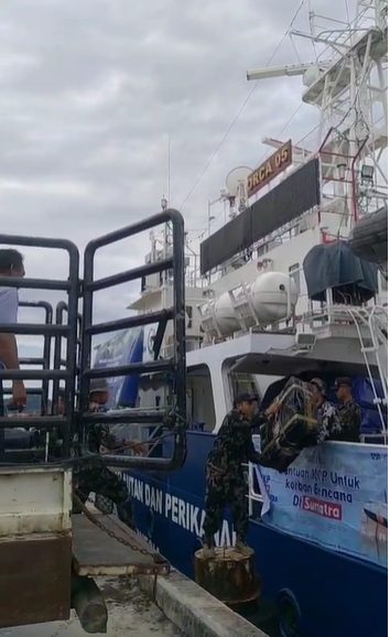 Bantuan yang berisi bahan makanan, seperti beras, sarden dan mie serta bahan pokok lainnya serta pakaian serta selimut dikirimkan ke lokasi bencana lewat kapal KKP dari Tanjung Priok pada Sabtu (6/12) lalu.
