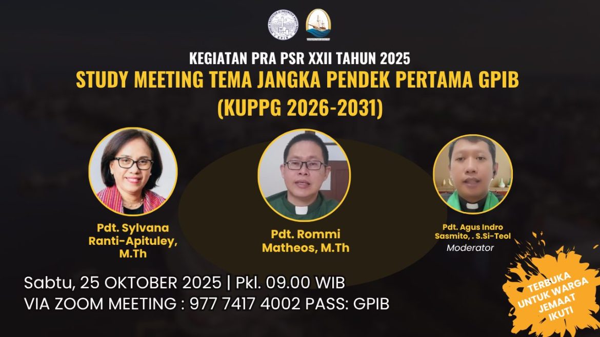 Jakarta, 22 Oktober 2025 — Majelis Sinode GPIB mengundang seluruh peserta Persidangan Sinode Raya (PSR) XXII GPIB 2025 untuk hadir dalam kegiatan Pra PSR XXII GPIB 2025, yang akan dilaksanakan…