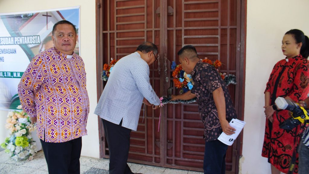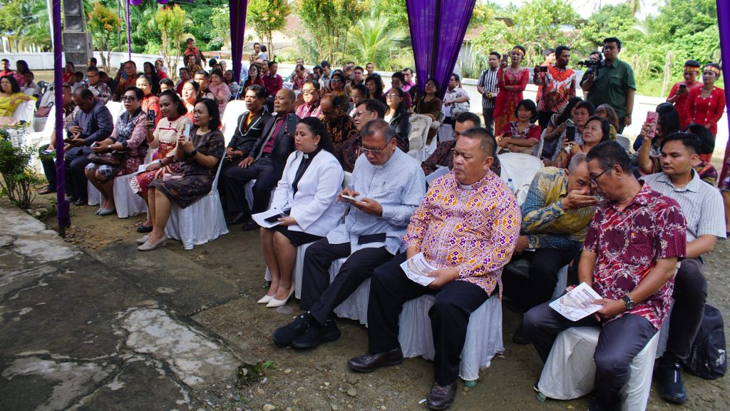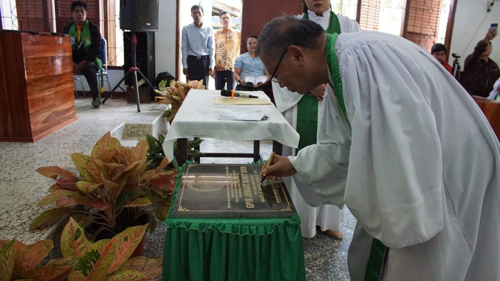 “Terpujilah Tuhan kita Yesus Kristus, Sang Kepala Gereja, hari ini kita bisa melaksanakan ibadah penabisan gedung gereja dan pelembagaan jemaat GPIB yang ke-355.”