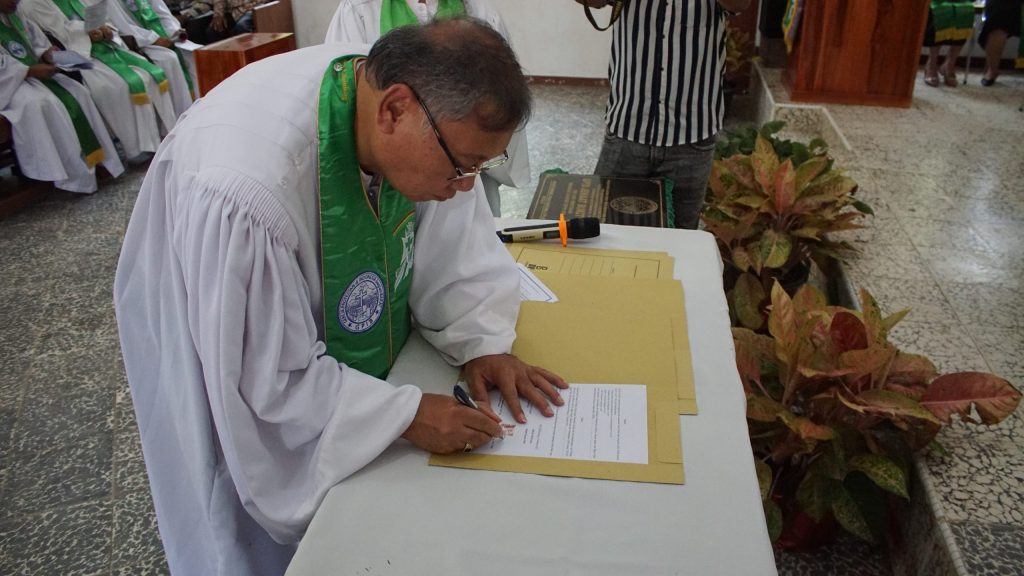Beliau juga menyoroti program lingkungan hidup Mupel, “Kami lagi menanam 10.000 mangrove di Bangkalan Susu… dari enam belas jemaat, walaupun kecil, mereka berpartisipasi aktif.”