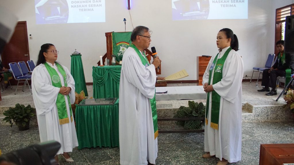 Pdt. Raintung juga menyampaikan ucapan selamat kepada Pdt. Diajeng Sesia Pinkanatalini Syahaininiah yang ditetapkan sebagai KMJ baru Jemaat Bukit Sion, “Pada akhirnya menetapkan Pendeta Sesia untuk bertugas menjalankan tugas selaku Ketua Majelis Jemaat di tempat ini. Semoga Ibu Pendeta Sesia bersama rekan-rekan diaken penatua langsung rapat majelis untuk menentukan PHM.”
