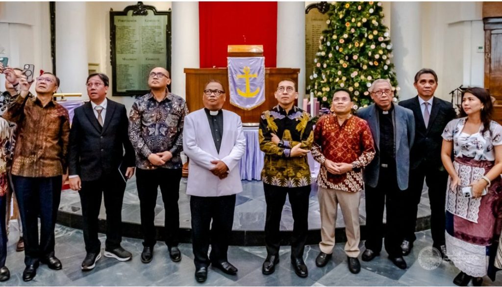 JAKARTA, GPIB – Pemerintah Republik Indonesia melalui Kementerian Kebudayaan (Kemenbud) meresmikan Galeri Cagar Budaya Peringkat Nasional bagi Gereja GPIB Immanuel, Minggu (21/12). Bertempat di halaman depan gedung gereja Menteri Kebudayaan (Menbud), Fadli Zon meresmikan galeri Cagar Budaya Peringkat Nasional di depan Ketua Umum Majelis Sinode GPIB Pdt.Nitis Putrasana Harsono, Sekretaris I MS Pdt. Pdt. Emmawati Yulia Rumampuk-Baule dan Bendahara MS Pnt. Steven Glenn Tunasdan, juga Ketua Majelis Jemaat Pdt.Abraham Ruben Persang, sejumlah pejabat Kementerian Budaya, sejumlah pendeta dan jemaat yang hadir siang itu.