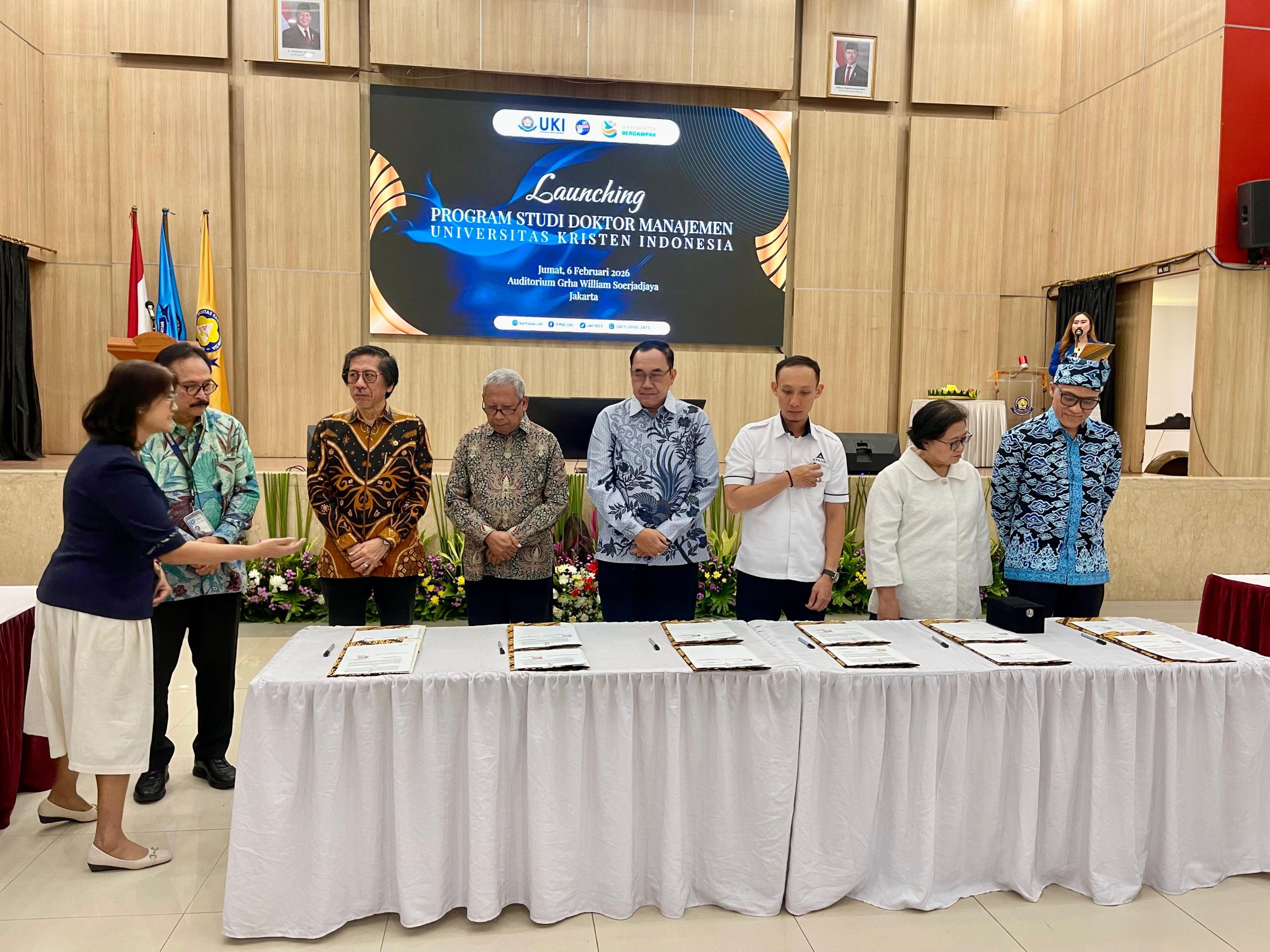 Kerja sama tersebut diwujudkan melalui penandatanganan Nota Kesepahaman atau Memorandum of Understanding (MoU), disela-sela peluncuran Program Doktor Manajemen UKI, di Jakarta, Jumat (6/2/2026).