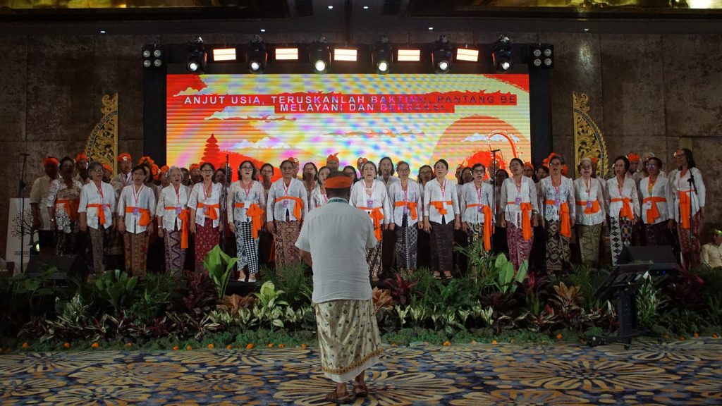 Acara kemudian dilanjutkan dengan nyanyian bakal Mars PKLU “Kaum Lansia Teruskanlah Baktimu” yang dinyanyikan dengan penuh semangat oleh Paduan Suara PKLU GPIB MUPEL BALI-NTB sebagai ungkapan iman dan dedikasi kaum lanjut usia GPIB untuk terus melayani Tuhan dengan hati yang gembira.