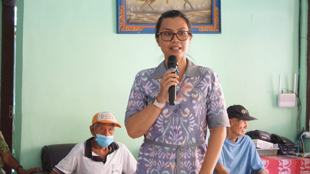 “Kami datang bersama-sama untuk berbagi kasih… Kita sama-sama mengucap syukur kepada Sang Yang Widi, kepada Tuhan yang memelihara kita semua. Pekak dan Ninik (sebutan opa dan opa di Bali-Red) juga dijaga, dipelihara sehingga sampai saat ini selalu sehat ya dalam usia yang lanjut. Harus tetap bersyukur, harus tetap gembira karena hati yang gembira adalah obat,” ujarnya penuh semangat.