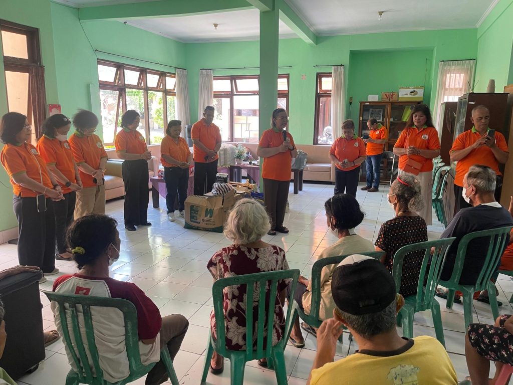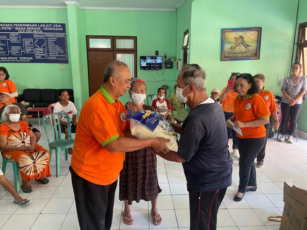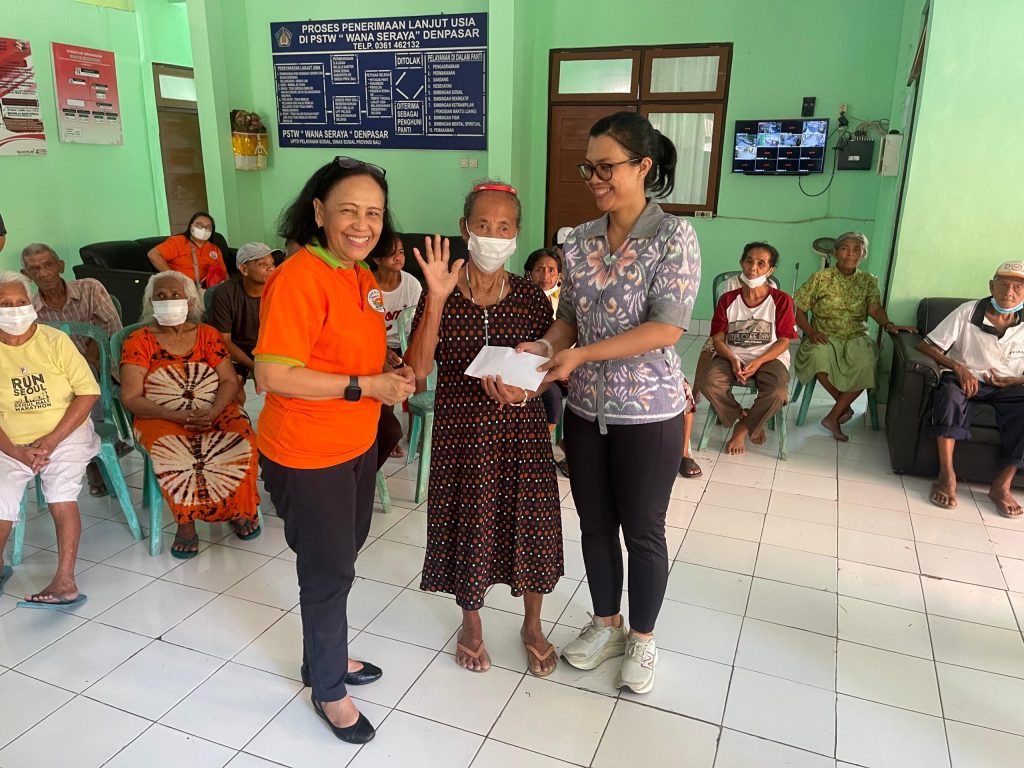 Di Panti Sosial Tresna Werdha Wana Seraya, suasana sukacita tampak ketika para anggota PKLU menyerahkan bingkisan kasih kepada para oma dan opa yang tinggal di panti tersebut.